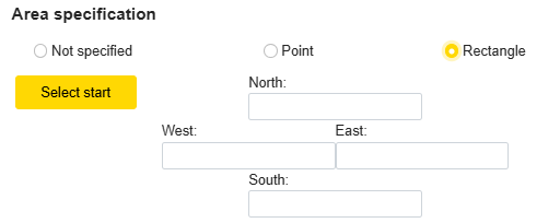 - To specify an area, select a point or rectangle and enter the value directly in the input field, or Click the "Select Start" button and select a point or rectangle on the map.